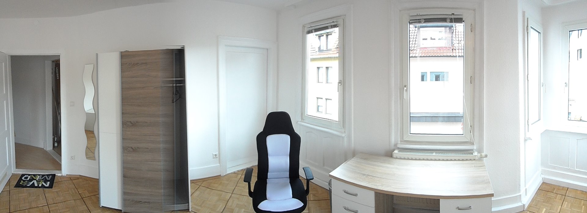 Alle Zimmer voll möbliert, (Schwebetürschrank, Schreibtisch mit vielen Schubkästen, Chefdrehsessel, Bett mit Bettschubkästen, Nachtkommode, Gardinen, Teppich usw.) Fotos findest Du in der Fotogalerie.